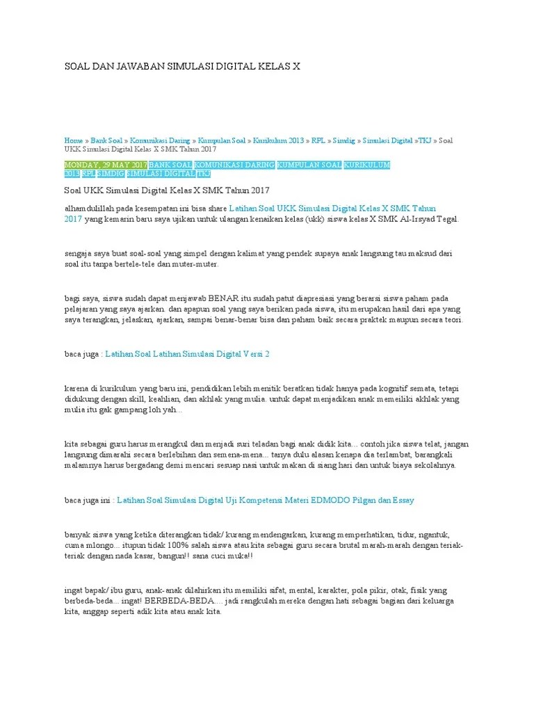 3.6 dan kd 4.6 1. Indikator soal yang baik memungkinkan disusunnya banyak variasi soal dan mampu mengukur kemampuan higher order thinking skill (hots) peserta . Untuk mengukur kemampuan siswa dalam memahami materi, buku ini dilengkapi dengan latihan soal berupa pilihan ganda, esai, dan tugas proyek. Soal dan jawab pts simulasi dan komunikasi digital x. Diberikan ilustrasi komunikasi daring asinkron, peserta didik.
